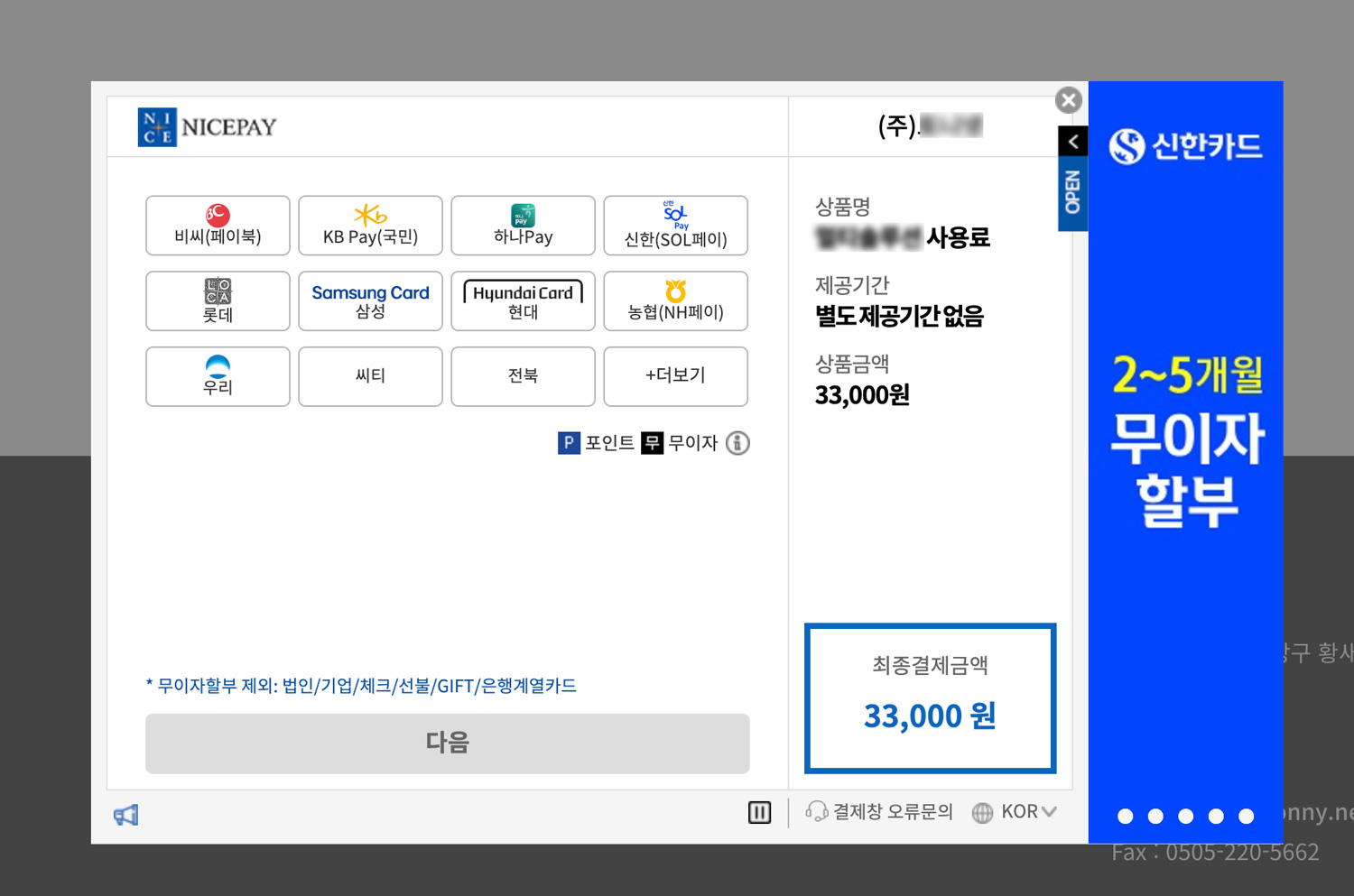 이 플러그인은 나이스페이 API를 사용하여 신용카드, 가상계좌, 실시간 계좌이체, 휴대폰 결제를 지원합니다.