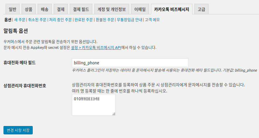 우커머스 결제 필드 관리