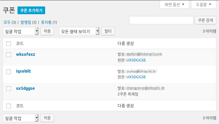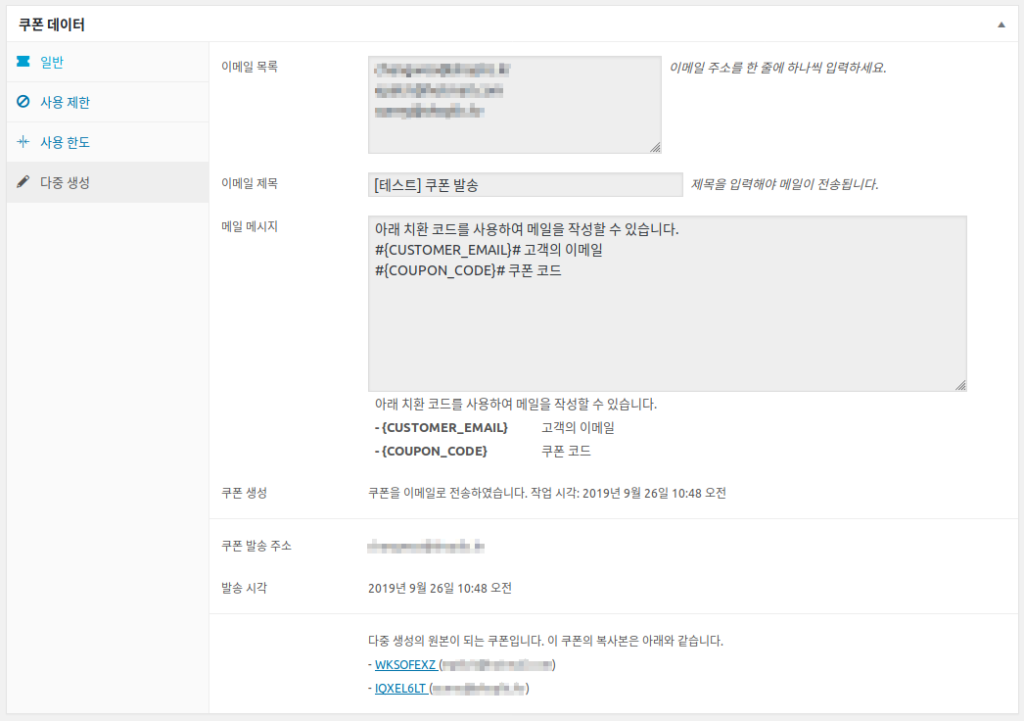 이 플러그인은 똑똑하게도 입력한 이메일 주소만큼 쿠폰을 한 번에 만들어내고,