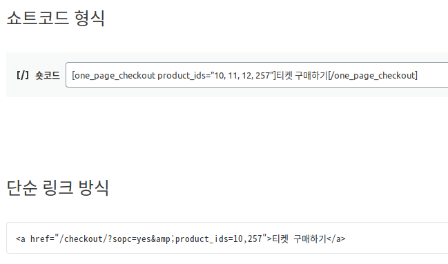[one_page_checkout product_ids=”123, 232, 577″]티켓 구매하기[/one_page_checkout]