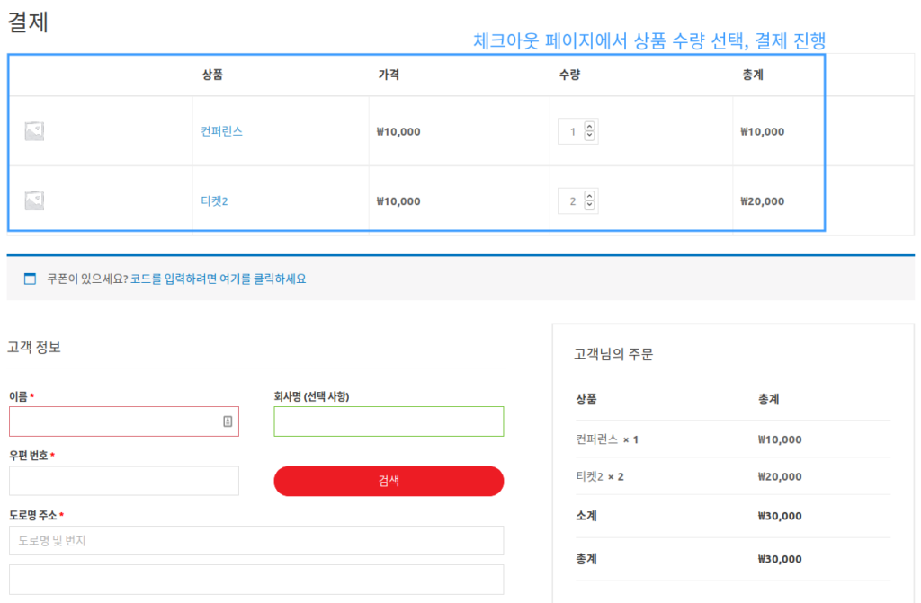 우커머스 결제 필드를 설정하고, 우편번호 검색 기능을 추가할 수 있습니다. 우커머스 결제 필드를 설정하고, 우편번호 검색 기능을 추가할 수 있습니다.